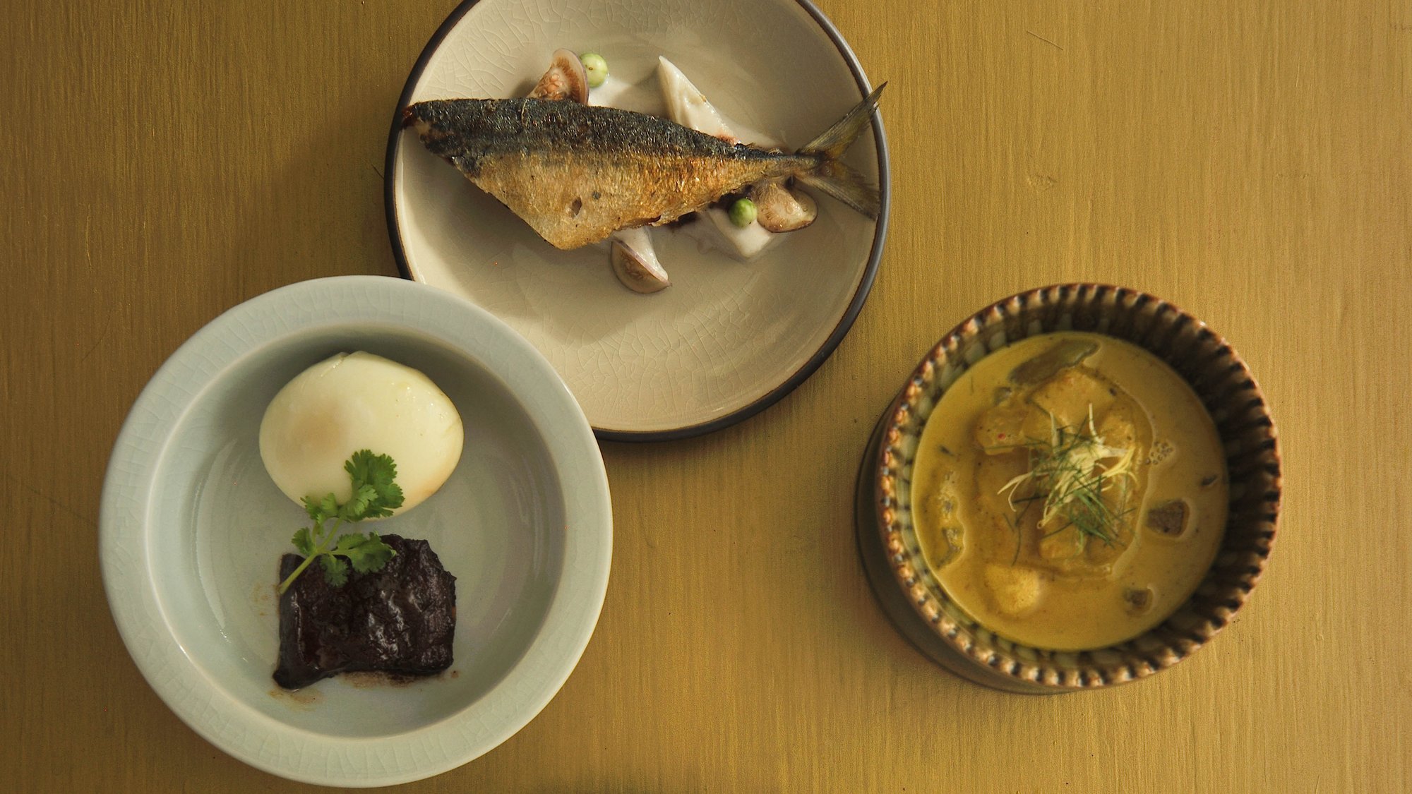 Le restaurant Celadon, à l’hôtel Sukhothai, est une adresse incontournable. Gert De Mangeleer encense le goût des nouilles de riz fermentées au ‘sweet chili’ et à la sauce aux arachides. La traditionnelle soupe tom yam avec Saint-Jacques, calamars, crevettes géantes, couteaux, palourdes et moules est presque immangeable tant elle est relevée. Le ‘snow fish’ au curry jaune décroche un 17+ selon Gault & Millau. Et, selon Marc Declerck, administrateur délégué de Gault & Millau Benelux, le dessert au thé, riz et noix de coco trouverait aisément sa place au Hertog Jan. Gert De Mangeleer éclate de rire: n’exagérons rien!